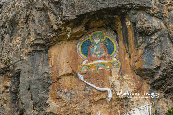 仔细一看,不少石壁上经当地的藏民之手画上了一幅幅栩栩如生的壁画。人物形态惟妙惟肖,色彩艳丽线条稳重。问了下当地人,才得知这里的石林在形成的过程中遭遇了青藏高原抬升造成的缺水、干旱,水蚀过程未能完成,而是经过漫长的风蚀后,形成了现在这样的独特风貌。