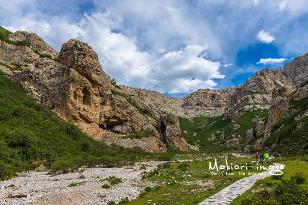 哈熊沟景区是开放式景区,目前不收门票。这里也是当地藏民休闲娱乐的地方,像我们这种来看风景的游客还真不多。从入口往里走,新修的栈道通向沟内深处,山间清泉溪流,清凉透澈。数以百计的石林就在山坡中,石林色彩掺杂,有淡雅的、有浓烈的,浑然天成。